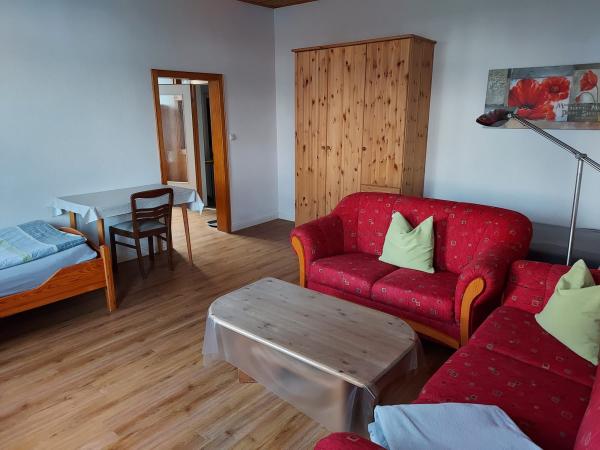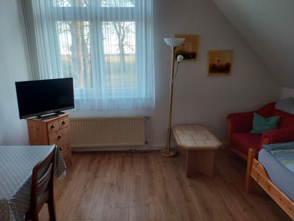 Doppel- und Einzelzimmer für 4 - 5 Personen, mit SAT-TV, Dusche/WC, WLAN, Kochgelegenheit, Kühlschränke (teilweise zusammen liegende Zimmer können auch als Ferienwohnung genutzt werden). Gute Parkmöglichkeiten, Sitzgelegenheiten im Garten sind bei uns auf dem Bauernhof (nur Ackerbau) vorhanden.
